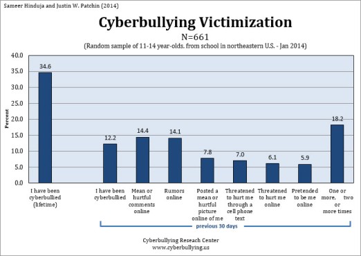 Approximately 35% of students aged 11-14 experience cyberbullying in their lifetimes.